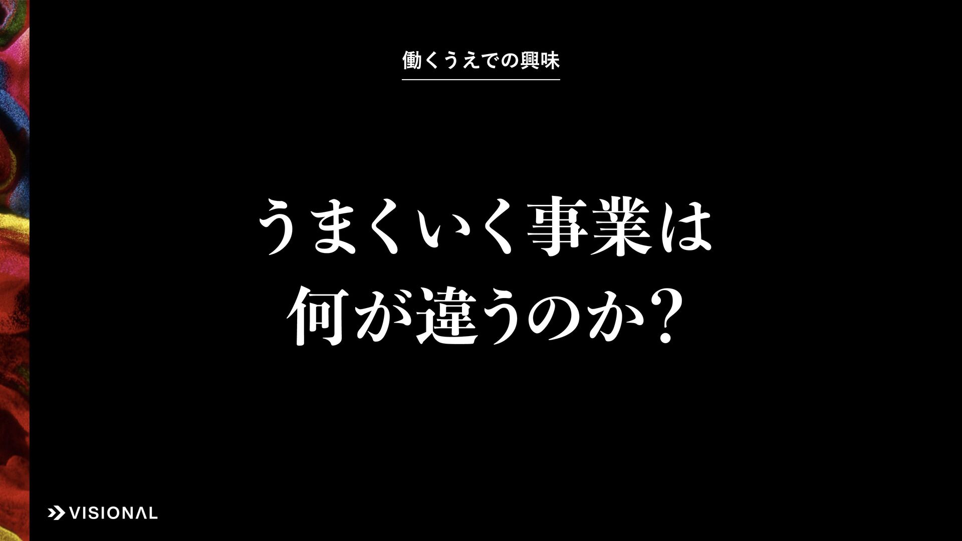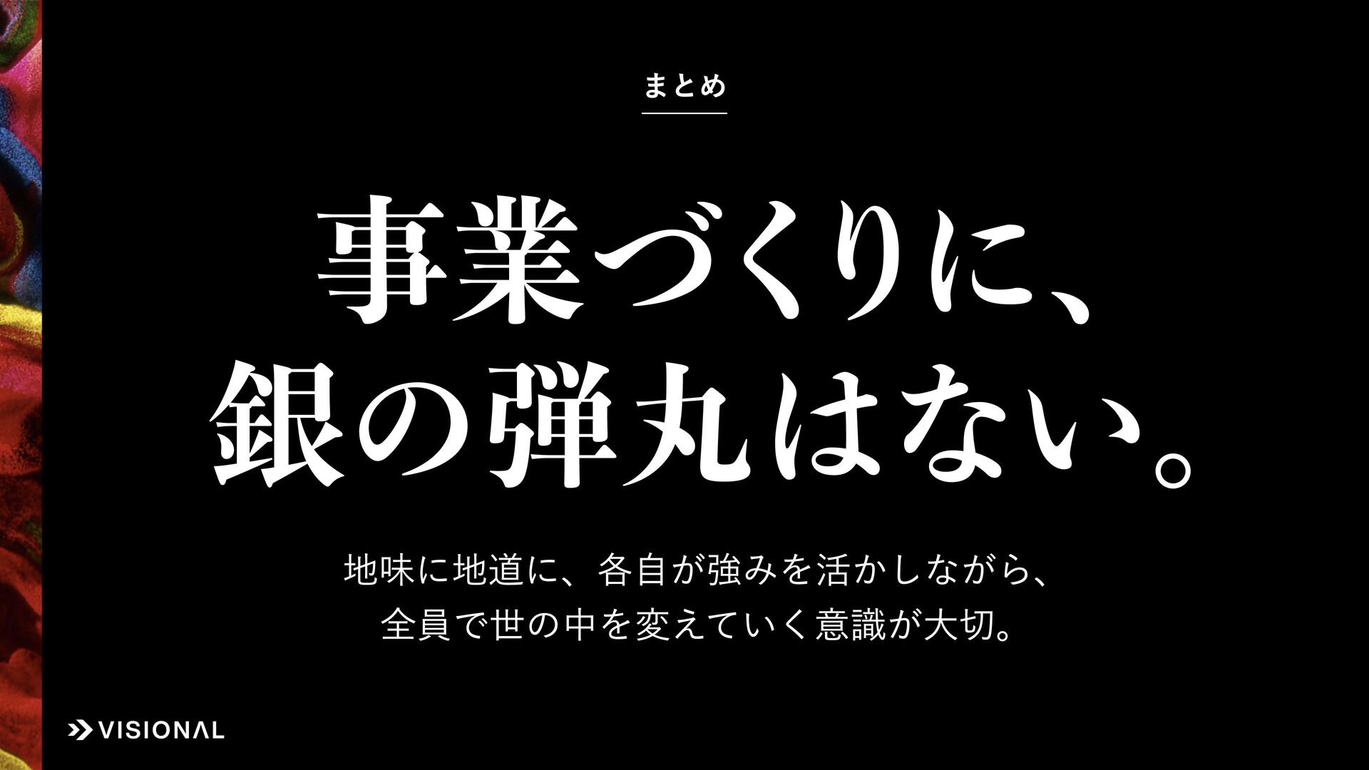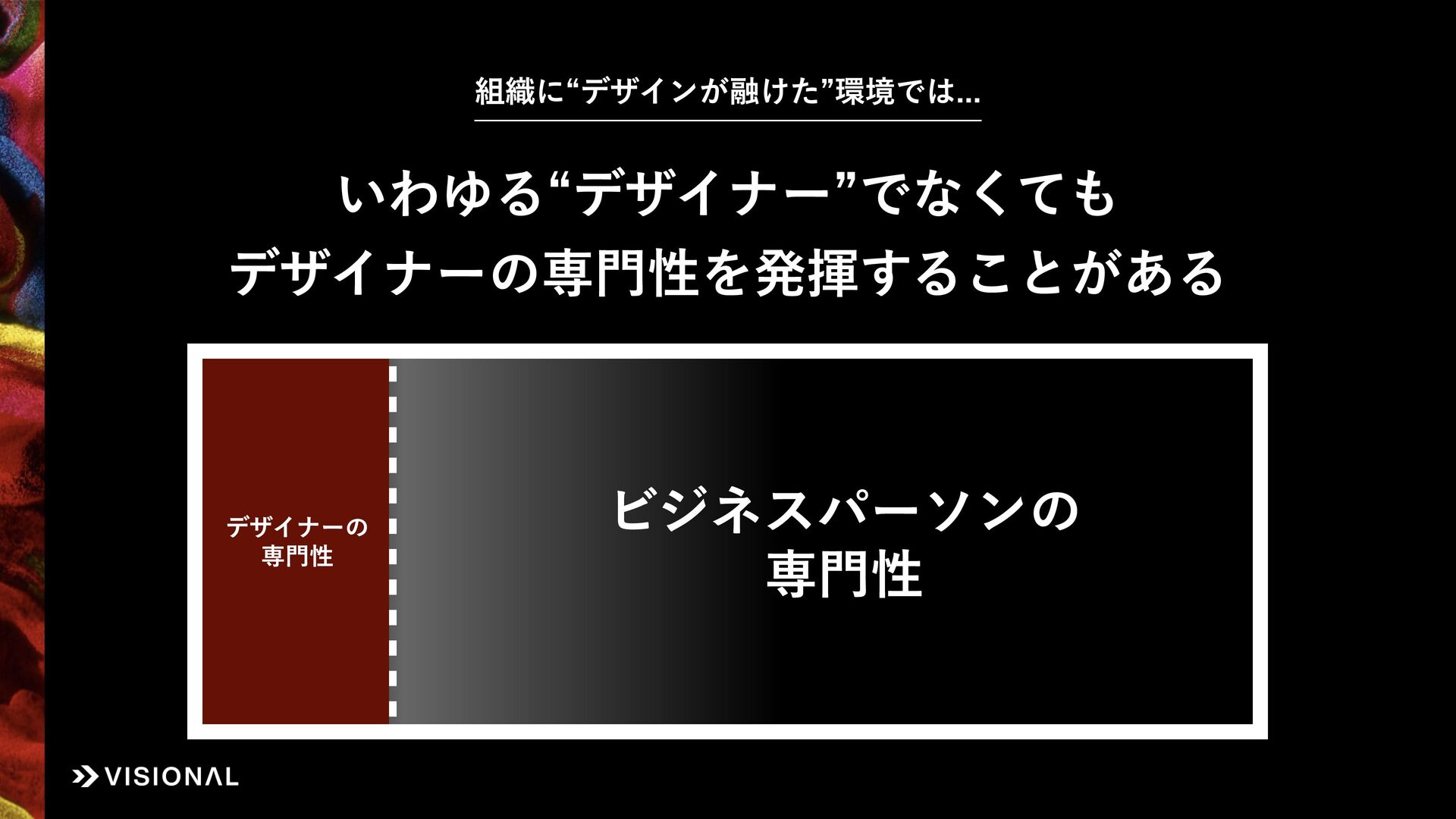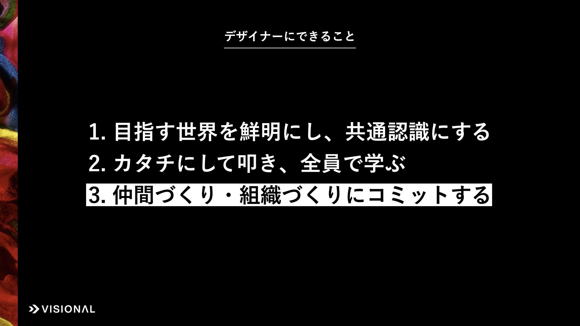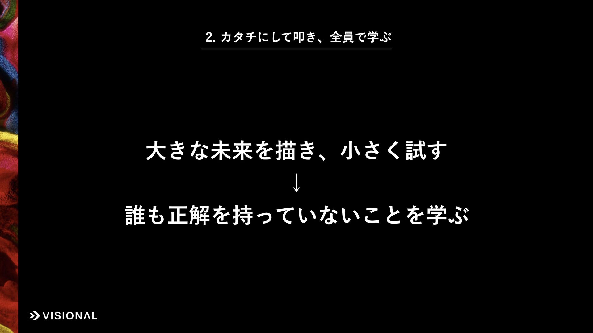 Visionalでは、事業・組織・経営など、あらゆるものに“デザインのチカラ”をはたらかせ、すべての仲間とともに未来のアタリマエとなる価値創出に挑戦しています。