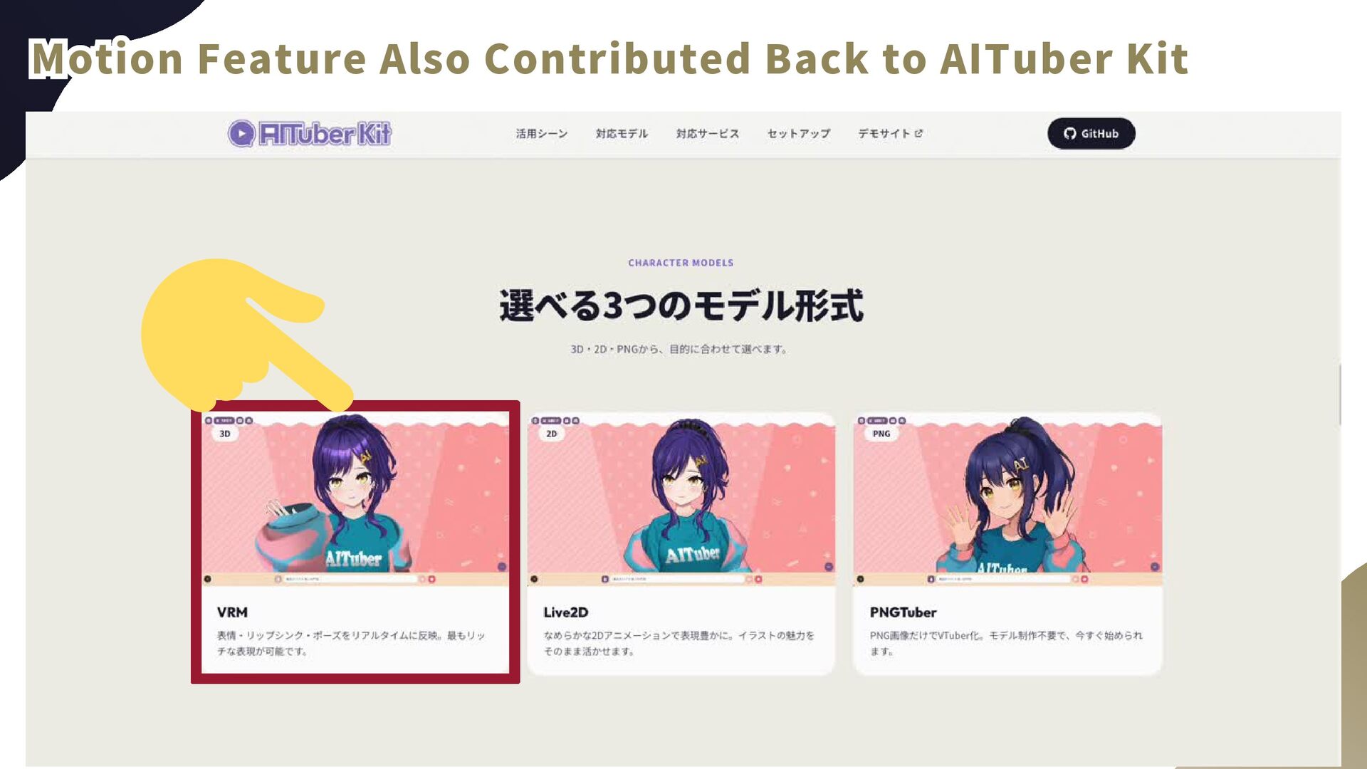 Also Contributed Back to AITuber Kit Motion Feature Also Contributed Back to AITuber Kit