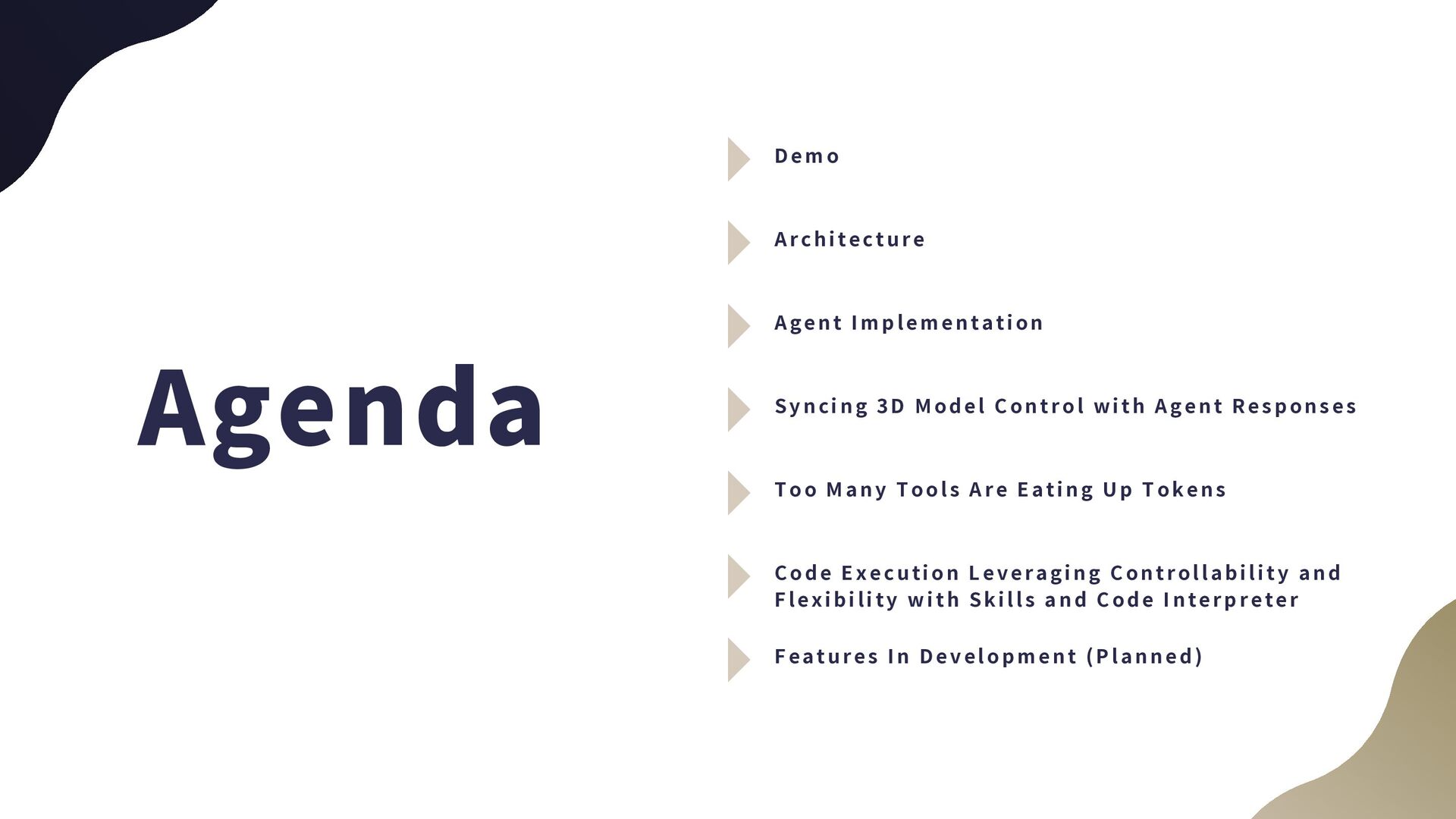 5. Agenda Demo Architecture Agent Implementation Syncing 3D Model Control with
