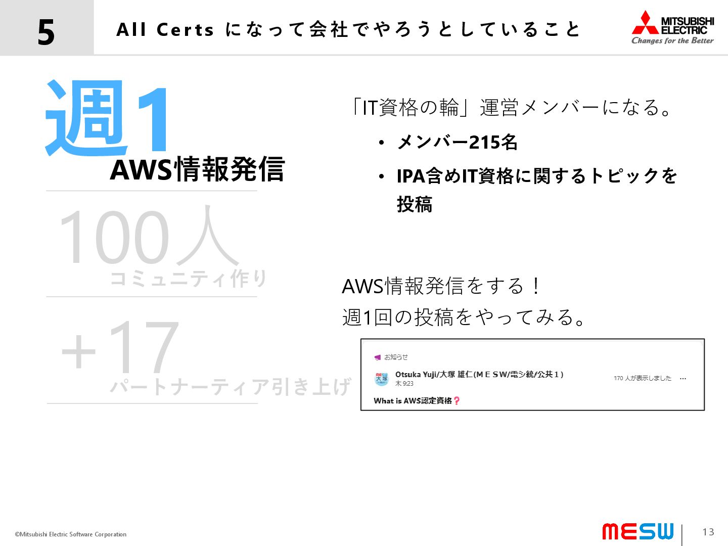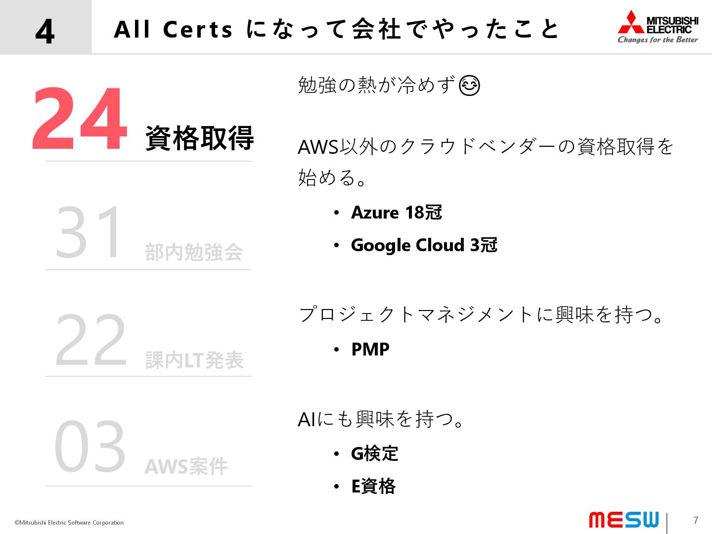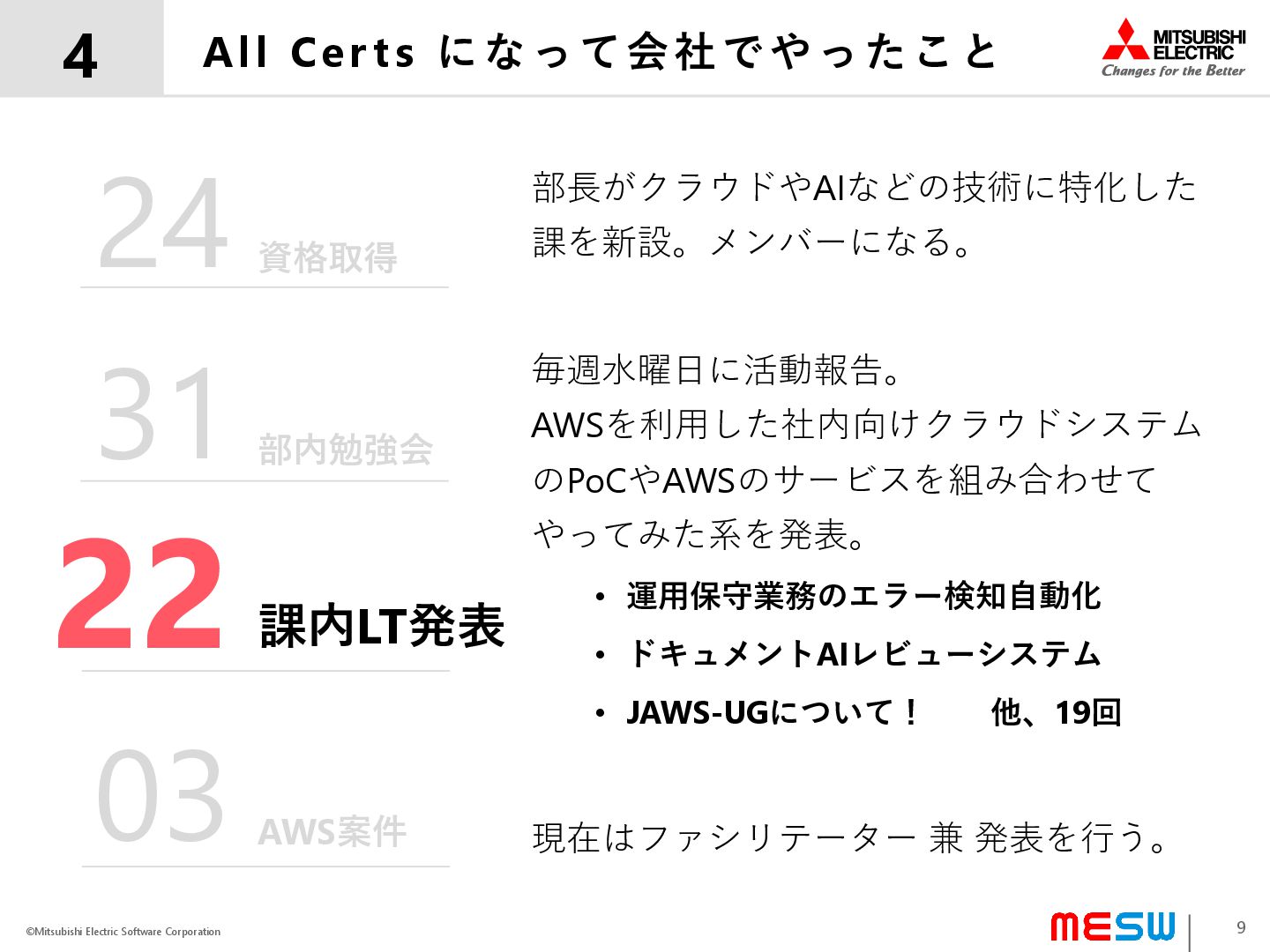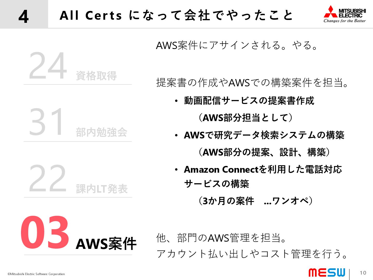 ©Mitsubishi Electric Software Corporation All Cer ts になって会社でやったこと 4 10