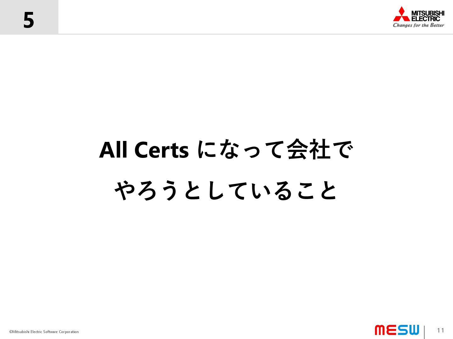 ©Mitsubishi Electric Software Corporation 5 11 All Certs になって会社で やろうとしていること