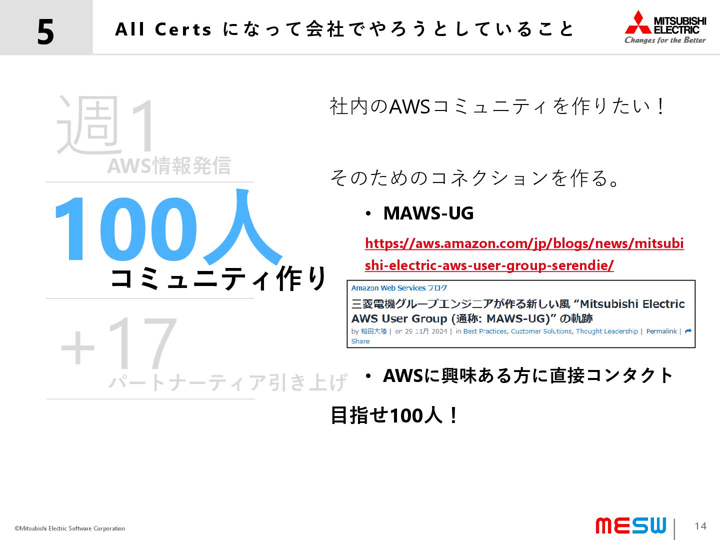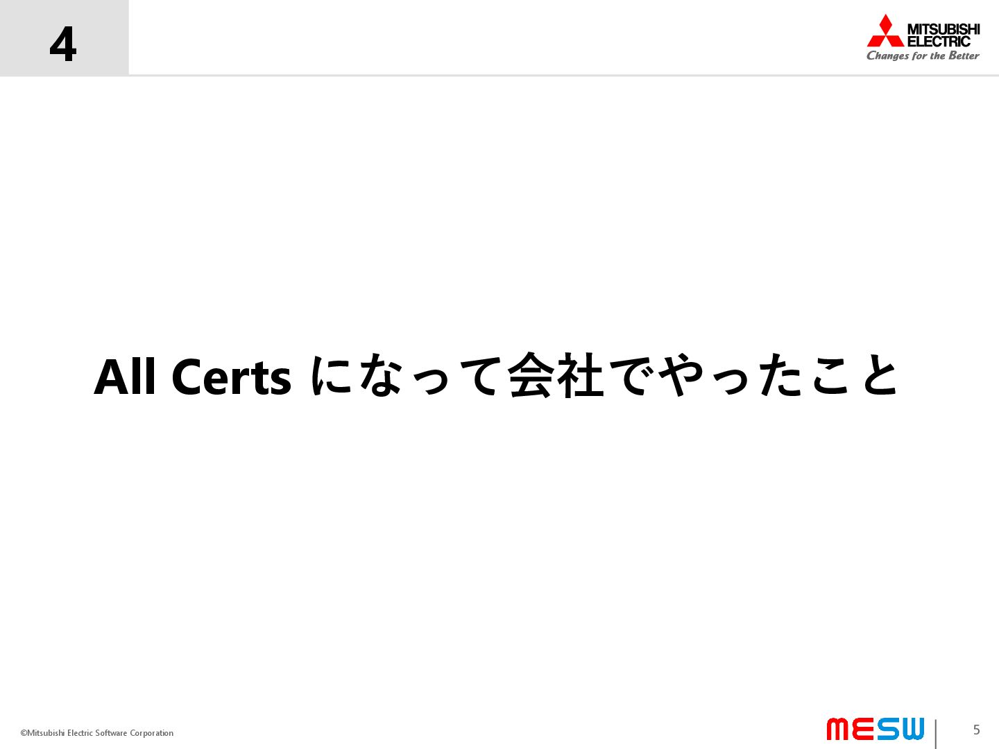 ©Mitsubishi Electric Software Corporation 4 5 All Certs になって会社でやったこと