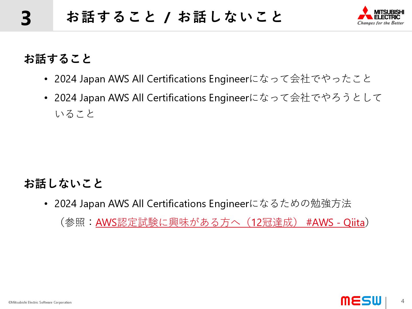©Mitsubishi Electric Software Corporation お話すること / お話しないこと 3 3